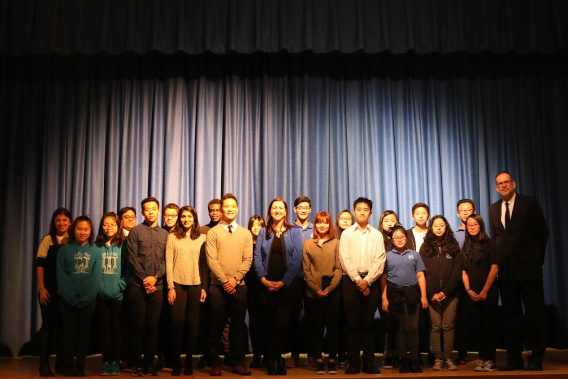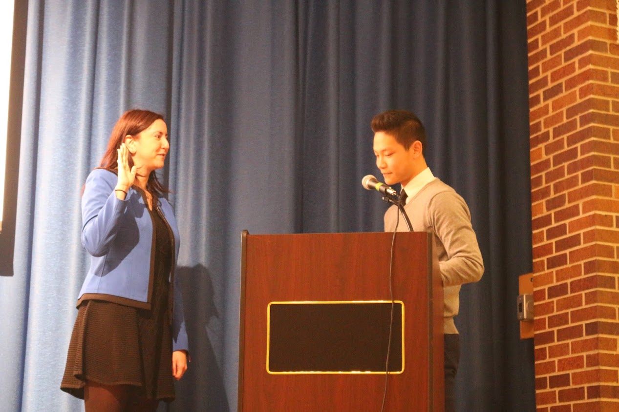 The celebratory event kicked off the morning’s student assembly at the Flushing school. Faculty, administrators and members of the School Leadership Team also attended the swearing-in ceremony.